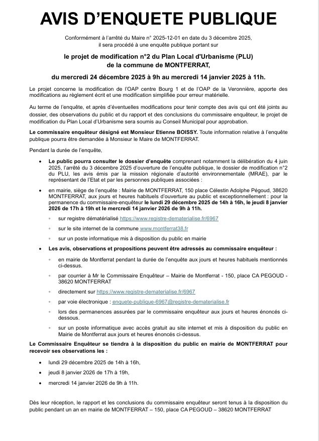 “REPORTÉ” AVIS D’ENQUÊTE PUBLIQUE MODIFICATION PLU